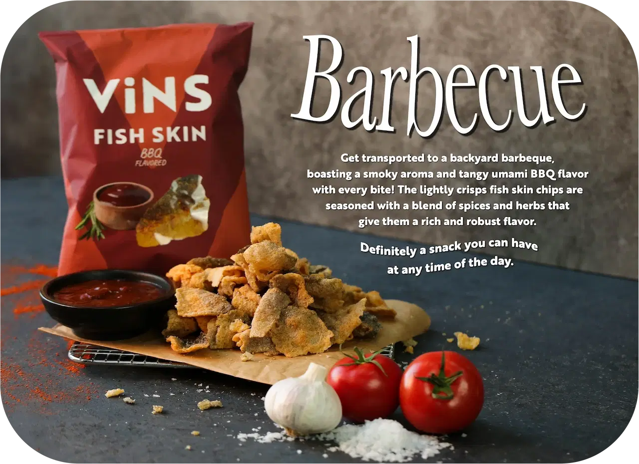 Seasoned fish skin (fish skin, palm oil, potato flour, tapioca flour, salt, monosodium glutamate), seasoning powder (sugar, maltodextrin, salt, yeast extract, soy sauce powder, tomato powder, natural flavor, garlic powder, artificial flavor, sodium acetate, silicon dioxide), palm oil.